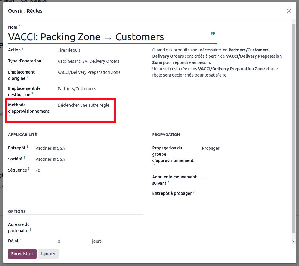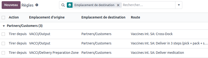 The rule transfers the need created by a sale from the location 'Partners/Customers' to the location 'VACCI/Delivery Preparation Zone'. We want to move the goods from the Delivery Preparation Zone to the Customers.