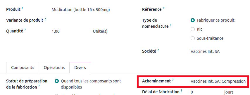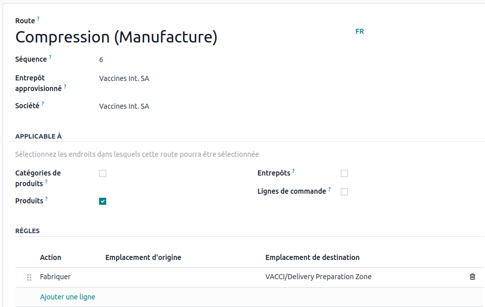 When a need arises at this location, we want to generate a manufacturing order for the compression process. To do this, it is necessary to create a route with a manufacturing rule.