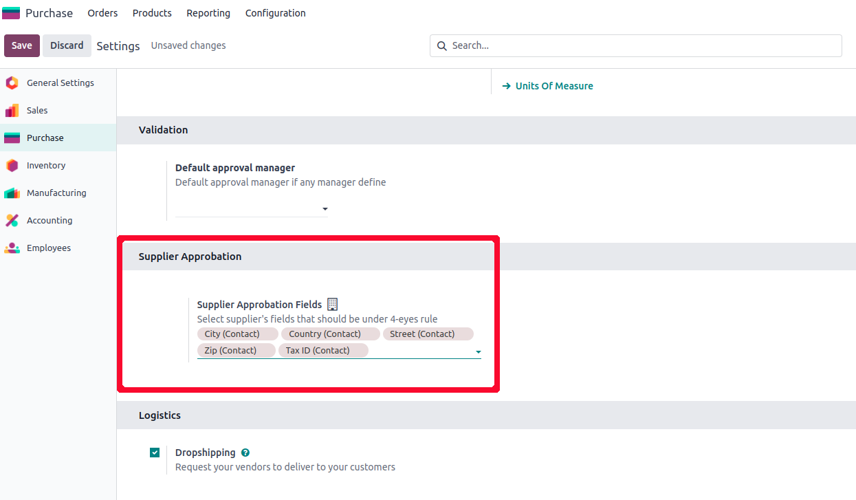 - When a critical field is modified for an approved supplier, it automatically returns to the 'To Approve' state. This implies that modifications to non-critical fields do not alter the supplier's status. It's noteworthy that users cannot approve their own modifications, even with sufficient access rights.