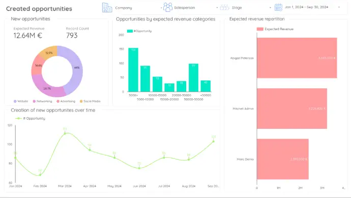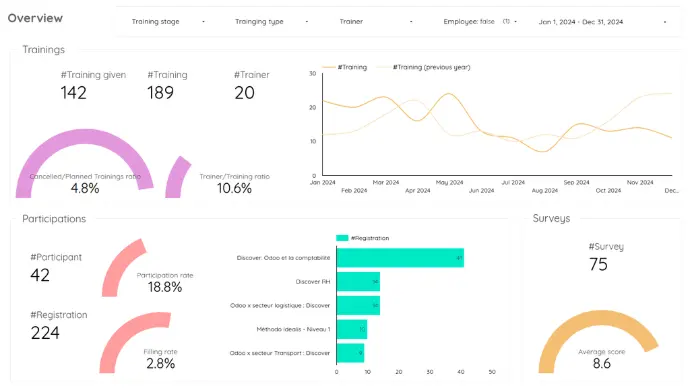 The dashboards are directly integrated into Odoo for a seamless user experience.